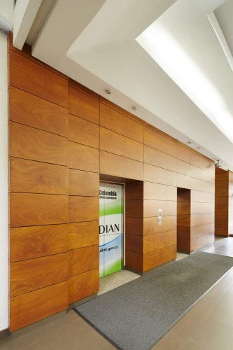 El revestimiento ProdEX son paneles de gran formato que están conformados por un composite revestido por una chapa de madera y con un tratamiento superficial de formulación propia a base de resinas acrílicas y PVDF, las cuales protegen el tablero frente de la luz del sol, los ataques de productos químicos (Antigraffiti) y los agentes atmosféricos.