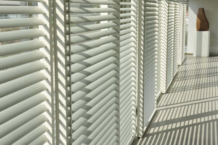 Los productos metálicos de acabado liso de Hunter Douglas permiten mayor protección e intimidad al interior de los espacios.