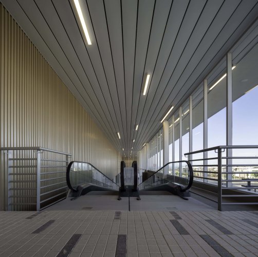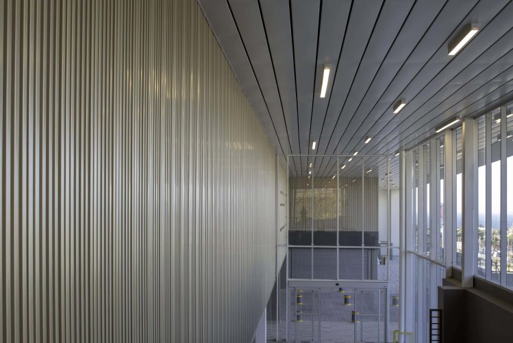 El cielo raso 84R está formado por paneles metálicos con un ancho de 84 milímetros con bordes redondeados