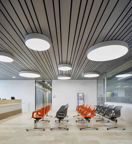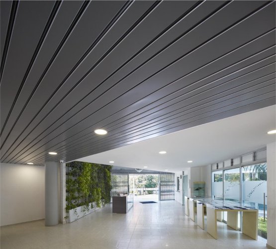 Por su parte, el diseño del cielo raso Multipanel B/BD es plano y con una separación de 20 milímetros entre paneles, la cual puede ser abierta o cerrada si se usa un perfil de sellamiento.