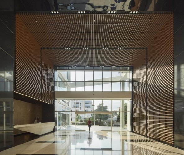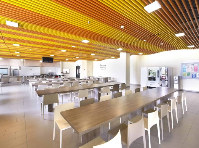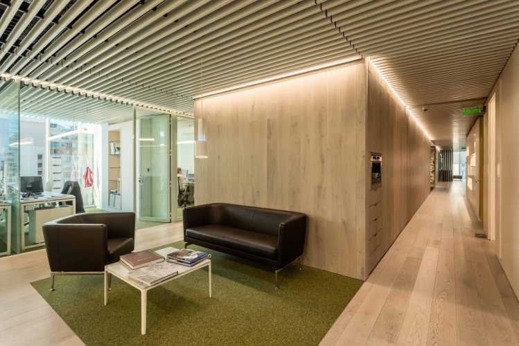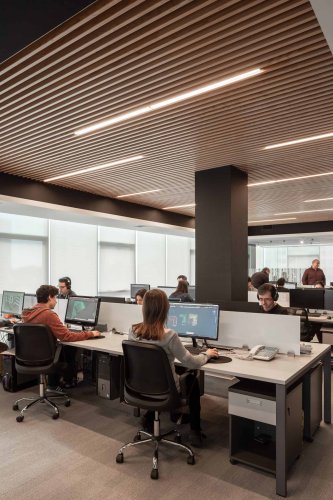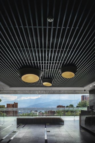El Cielo Raso Baffle es un cielo líneal muy versátil de paneles angostos que se instalan en paralelo con alturas y separaciones variables de acuerdo al movimiento a crear en el espacio.