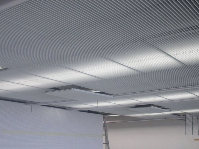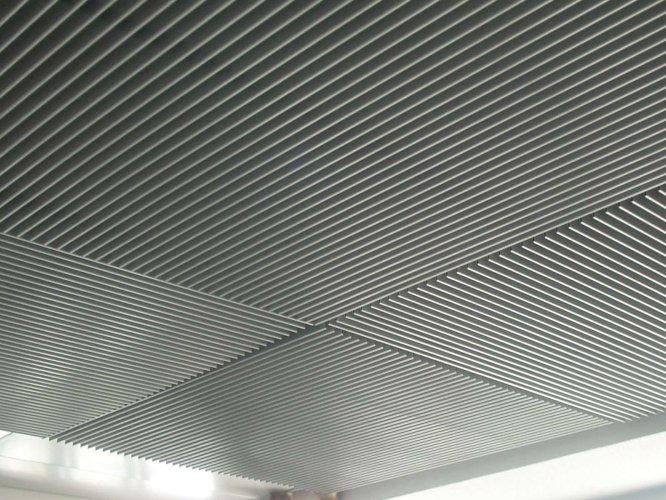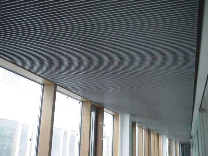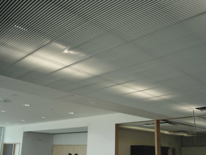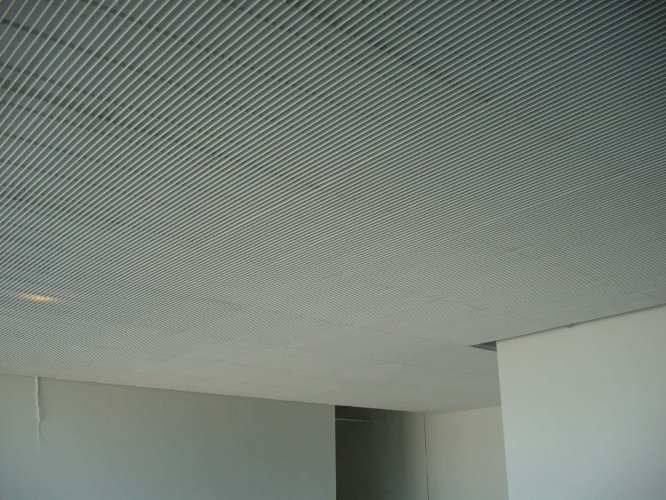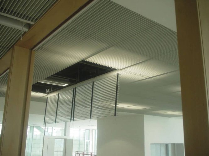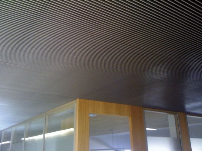 El cielo raso Deltaline es una alternativa de cielo lineal manejado a partir de módulos completos, conformados por láminas que se entregan ensambladas de forma estándar.