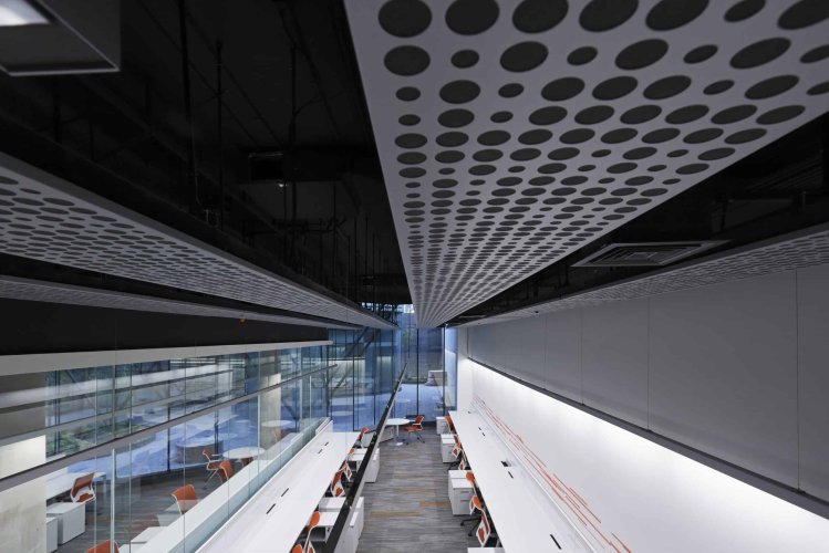 Este producto otorga excelentes propiedades acústicas al ser perforado, además, es compatible con diversos sistemas de iluminación.