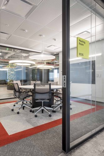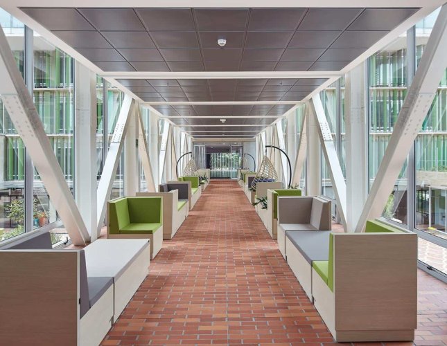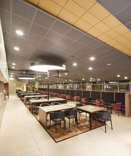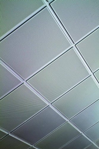 Cielo raso Tile Lay-in compuesto por bandejas metálicas soportadas en perfiles de suspensión