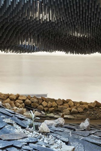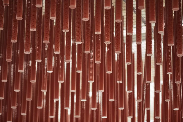 El cielo raso Tubrise está compuesto por tubos metálicos de un diámetro fijo y alturas variables, los cuales pueden ser instalados de forma paralela