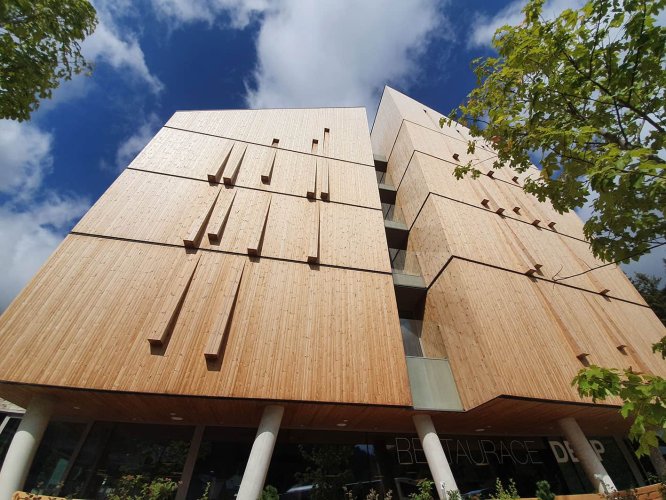 El revestimiento Lunawood, la modificación térmica de la madera hace que sea estable y resistente a la intemperie