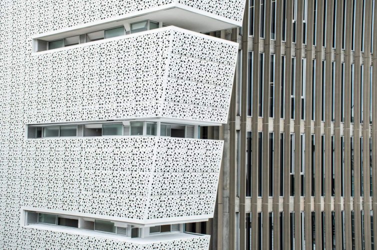 El revestimiento GeoClad se caracteriza por ser el producto más versátil del portafolio de fachadas, debido a la combinación de materiales, texturas, colores y distintas formas en un mismo panel
