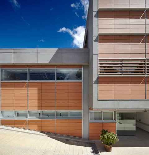 El Revestimiento NBK para fachadas se compone de placas de terracota cerámica de gran formato, desarrolladas con tecnología de punta