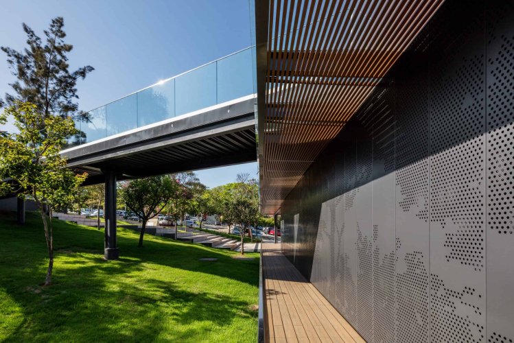 El revestimiento Screenpanel G se compone de paneles instalados en sentido vertical entregando a las edificaciones fachadas de una sola piel