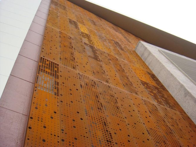 Con el revestimiento Screenpanel G se pueden obtener diseños personalizados y figuras especiales en su acabo personalizado ya sea punzonado o por medio de corte de agua.