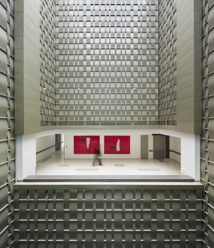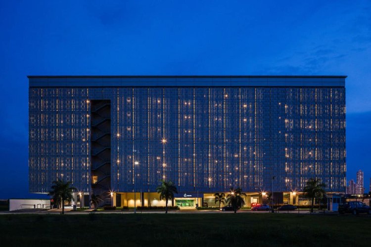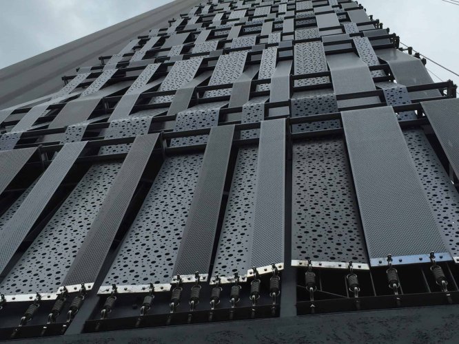 Stripweave es una solución versátil, pues, aunque puede variar la separación de sus elementos fijos horizontales o verticales, es posible combinar con distintos anchos de flejes, colores y perforaciones. Con la alternativa perforada es posible obtener fachadas traslúcidas, retro-iluminadas o como elemento de control solar pasivo.