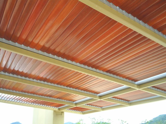 Por su acabado en madera, otorgan calidez y un toque de elegancia a los espacios y fachadas en que es empleado. Puede ser utilizado como alero, cielo raso o cortasol.